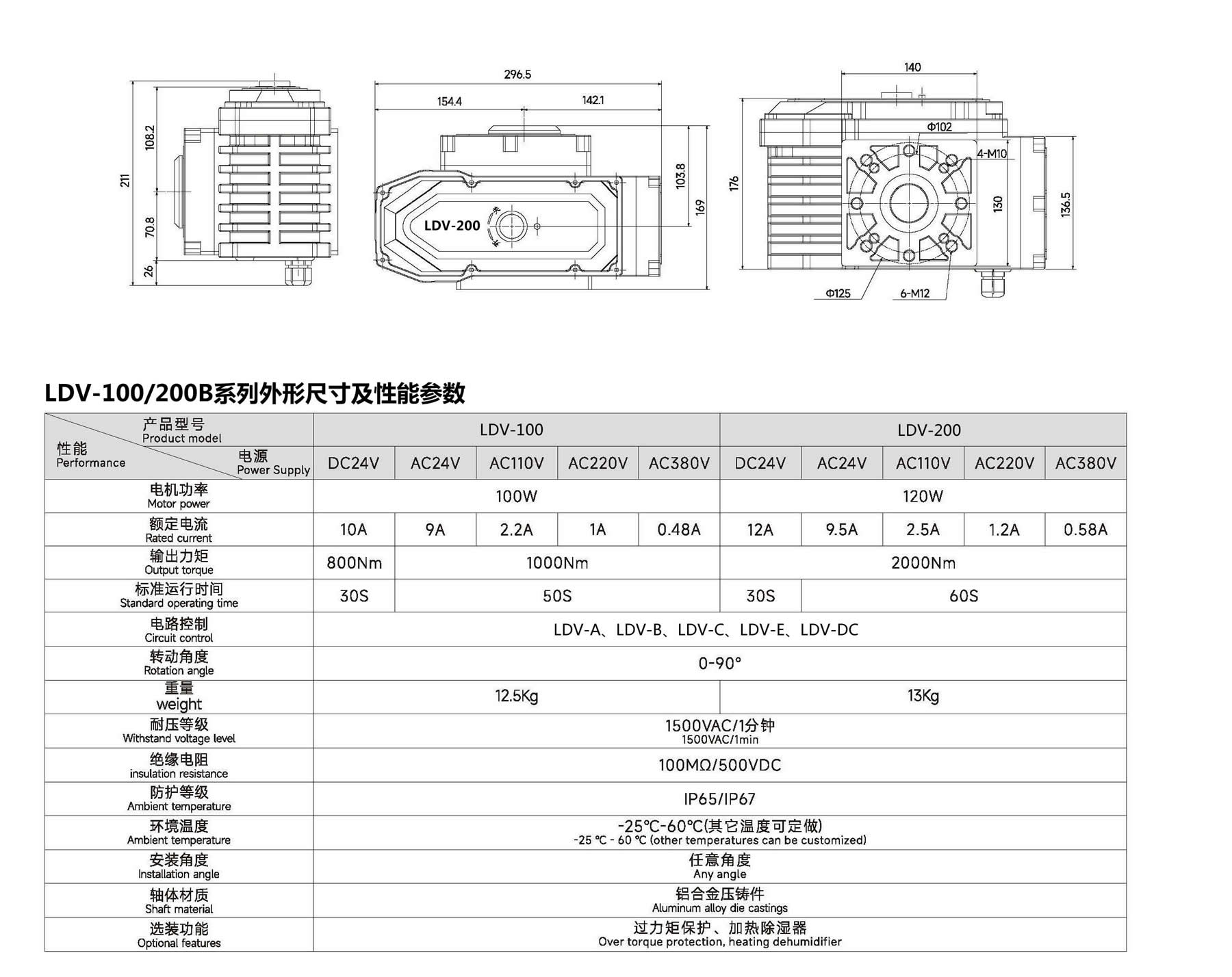 The LDV series electric actuator is used to control valves that rotate 0-90 degrees, such as butterfly valves, ball valves, dampers, plug valves, louver valves, etc. It uses AC220V, AC380V, AC110V, AC24V, and DC24V as the driving power supply, and uses 4-20mA current signals or 0-10V voltage signals as the control signals to make the valve move to the desired position and achieve its automatic control