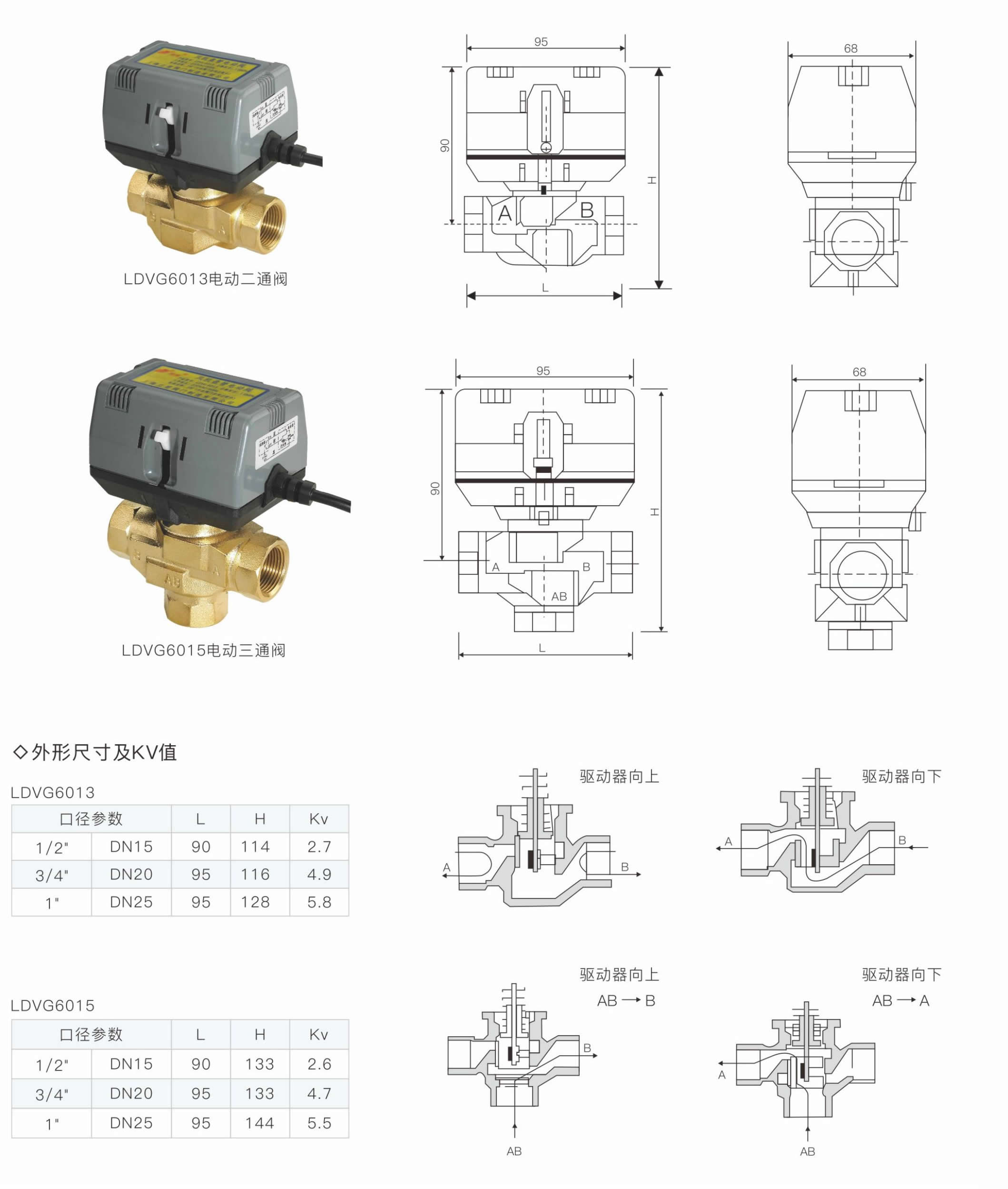 4 二通電動閥介質(zhì)流向從B至A;三通電動閥介質(zhì)流向從 AB至A或B。